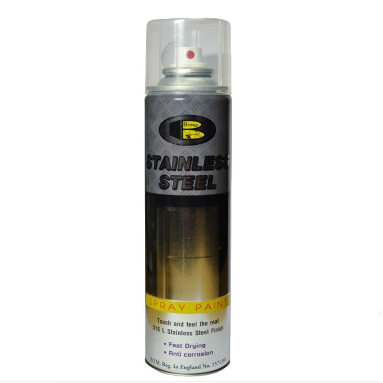 Sơn xịt kẽm Bosny Stainless Steel chống rỉ/hóa chất/oxi hóa/ăn mòn trong môi trường ẩm ướt