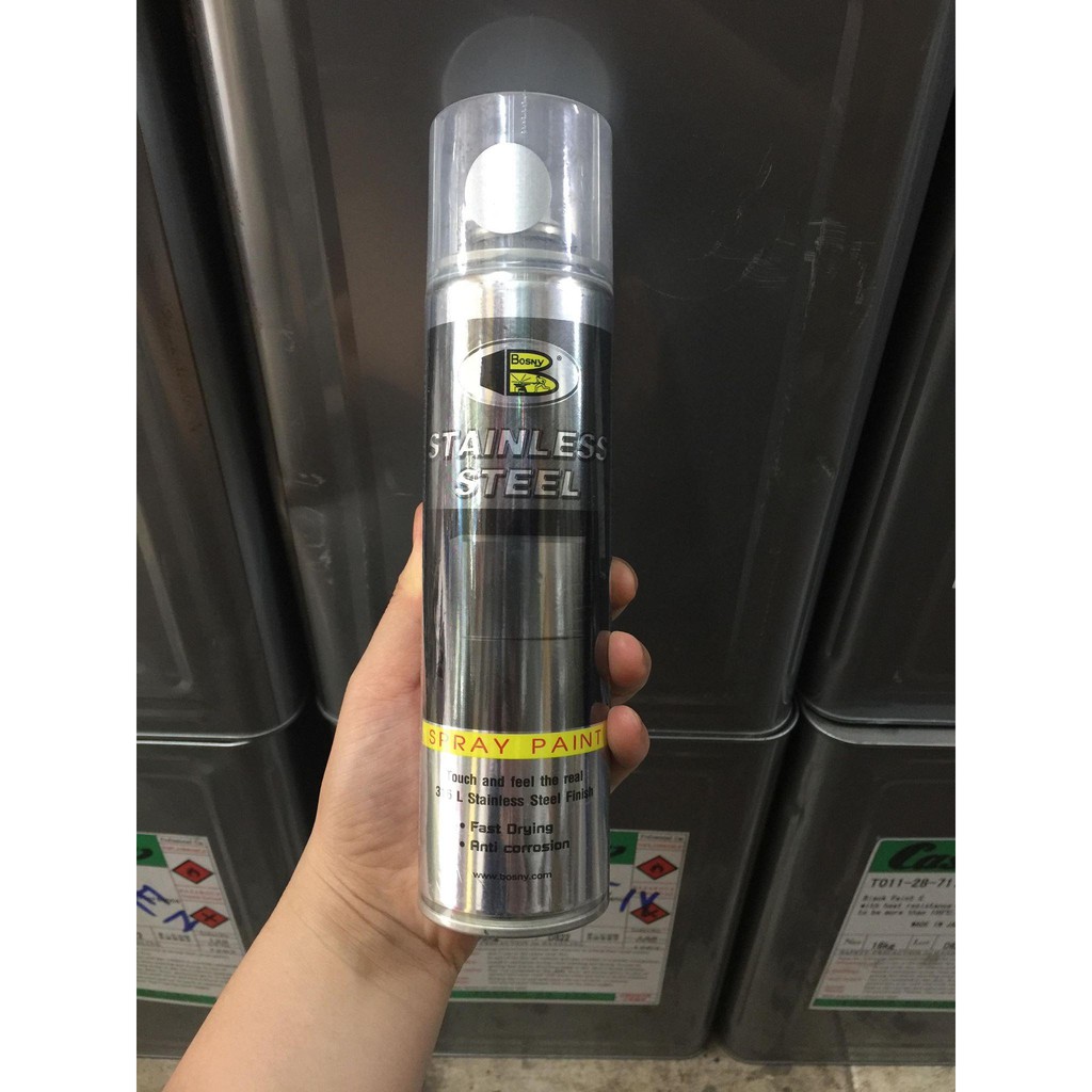 Nhà cửa & Đời sống > Dụng cụ & Thiết bị tiện ích > Sơn & chất chống thấm tường || Sơn Xịt Lót Mạ Kẽm Bosny Stainless Steel Chống Gỉ 225g - Bình Sợn Xịt Mạ Crôm - Sơn Mạ Kẽm Màu Bạc - Mạ Chrome - KivoCòn hàng