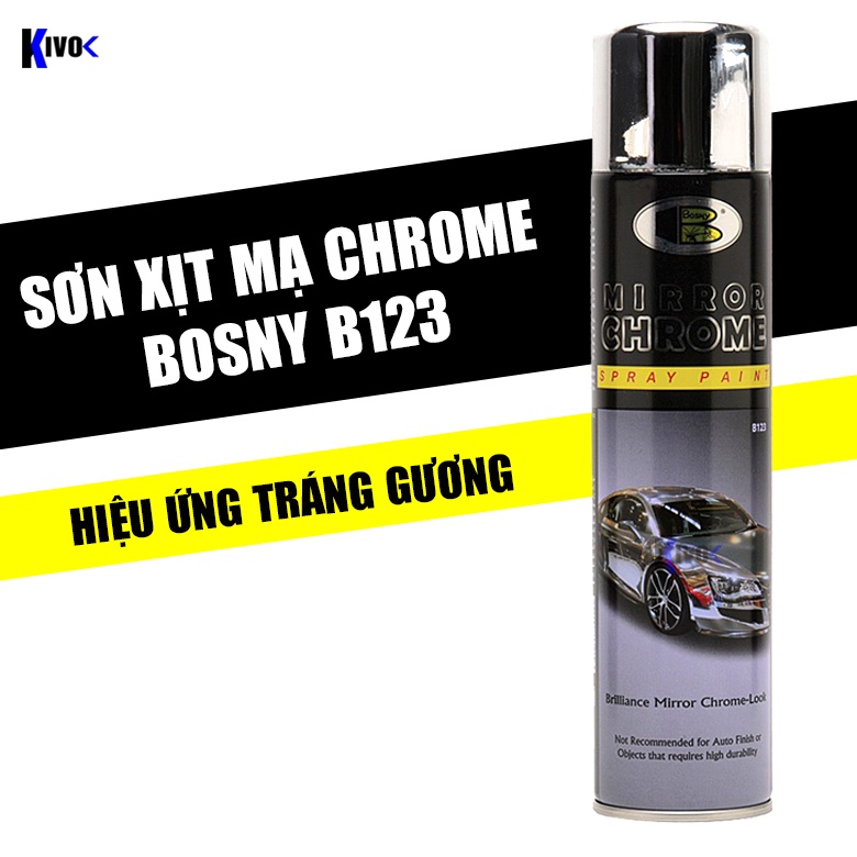 Sơn Xịt Mạ Crom Inox BOSNY- Sợn Xịt Mạ Crôm Hiệu Ứng Tráng Gương - Sơn Mạ Kẽm Màu Bạc- Sơn Xịt Xe Máy- Sơn Phun- Kivo