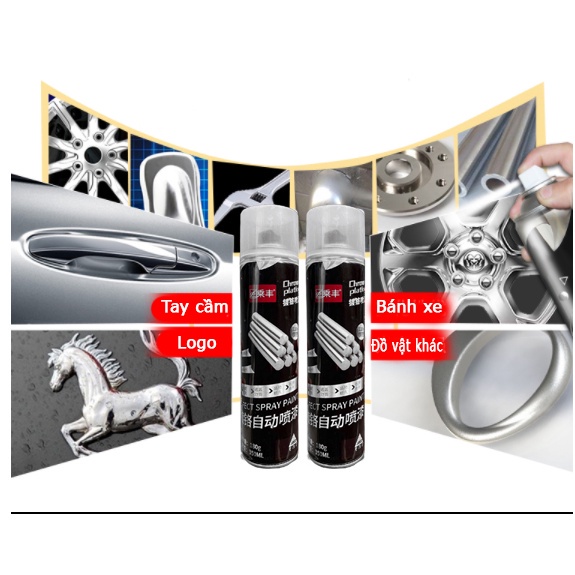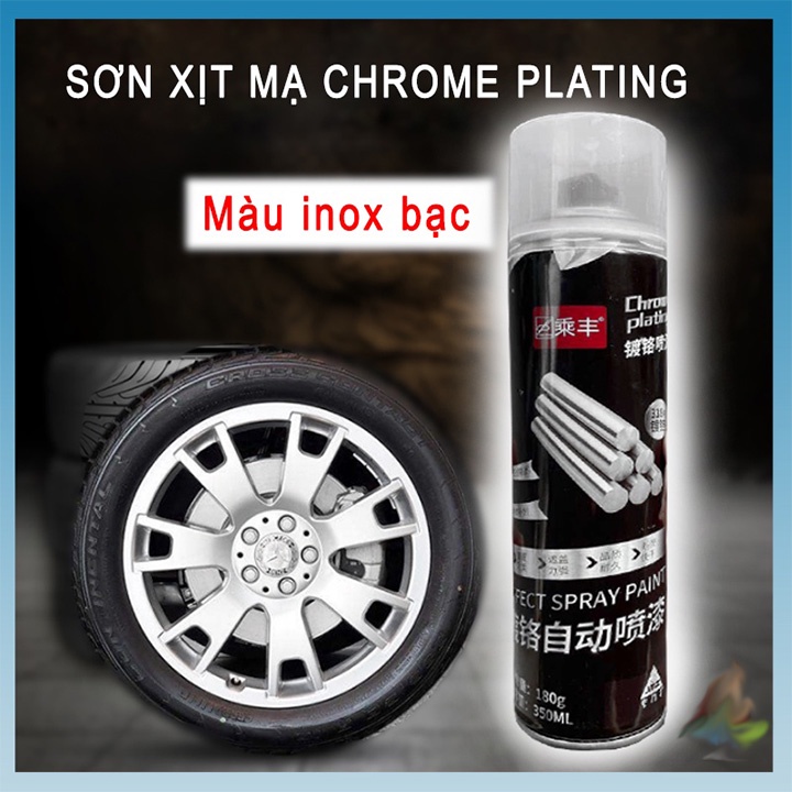 Chai sơn xịt mạ Chrome Plating 350ml màu inox crom bạc giá tốt dùng cho kim loại, ô tô, xe máy bảo vệ bệ mặt kim loại- Sơn mạ chrome hiệu ứng màu inox cao cấp, tinh tế và nổi bật. Lớp sơn bóng mịn, màng sơn khô nhanh, độ bóng cao bám trên mọi bề mặt thích hợp đồ nội thất, đồ gia dụng, xe oto, xe máy,… Sản phẩm sau khi sơn nổi bật, độc đáo và thu hút hơn