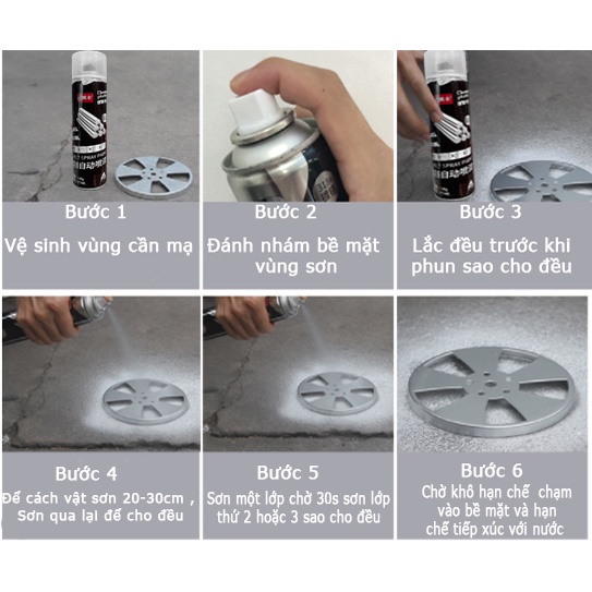 (!)Lưu ý: Sơn khô cứng sau 24 tiếng. Sơn thừa cách lưu cất là úp ngược chai sơn, đảm bảo đầu van sạch sơn trong vòi phun nhấn đầu xịt 2 giây. Để lần sau dùng đâu van không bị nghẹt.