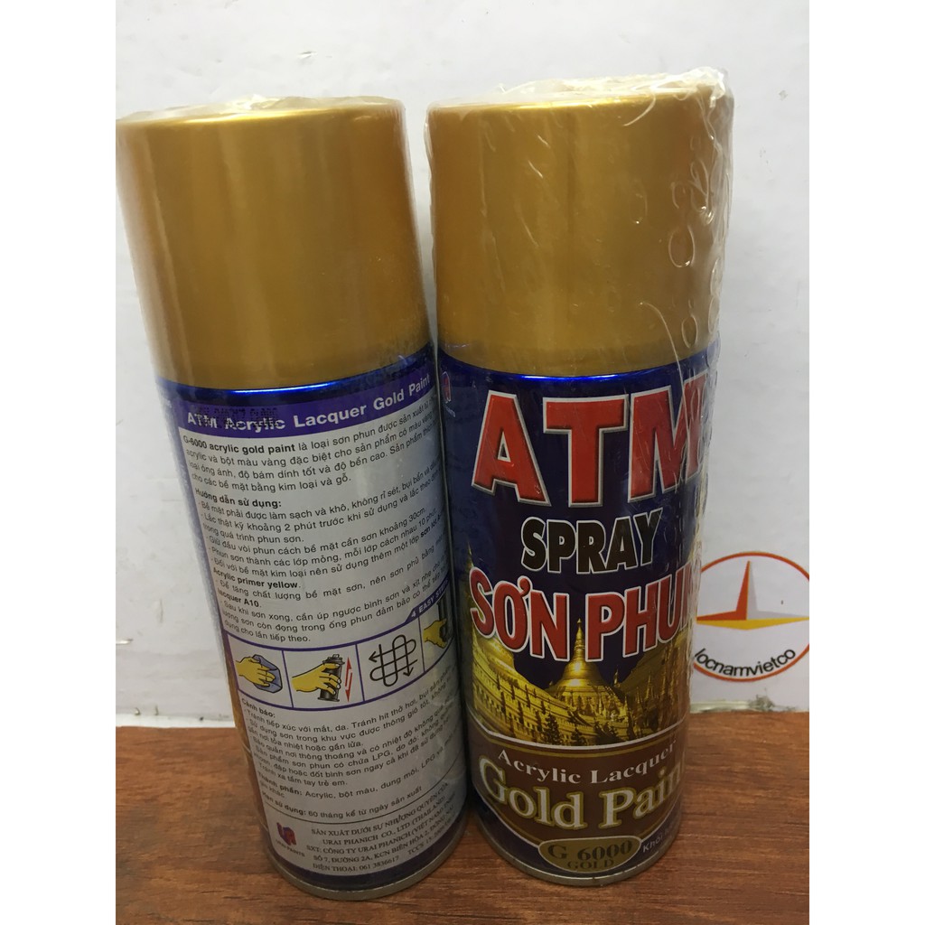 ATM Acrylic Lacquer Gold paintG 6000 Acrylic Gold Paint là loại sơn phun được sản xuất từ nhựa Acrylic và bột màu vàng đặc biệt cho sản phẩm có màu vàng kim loại óng ánh,độ bám dính tốt và đô bền cao. Sản phẩm thích hợp cho bề mặt gỗ và kim loại.