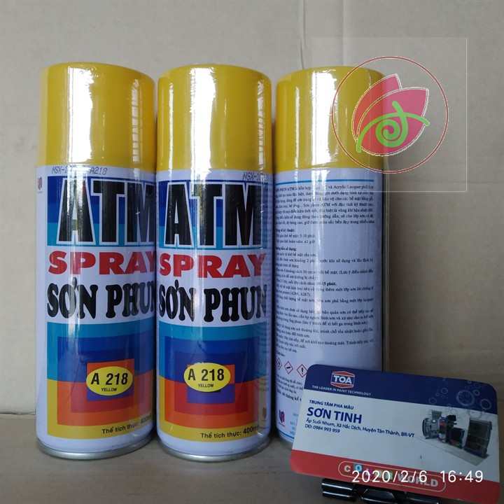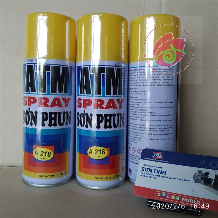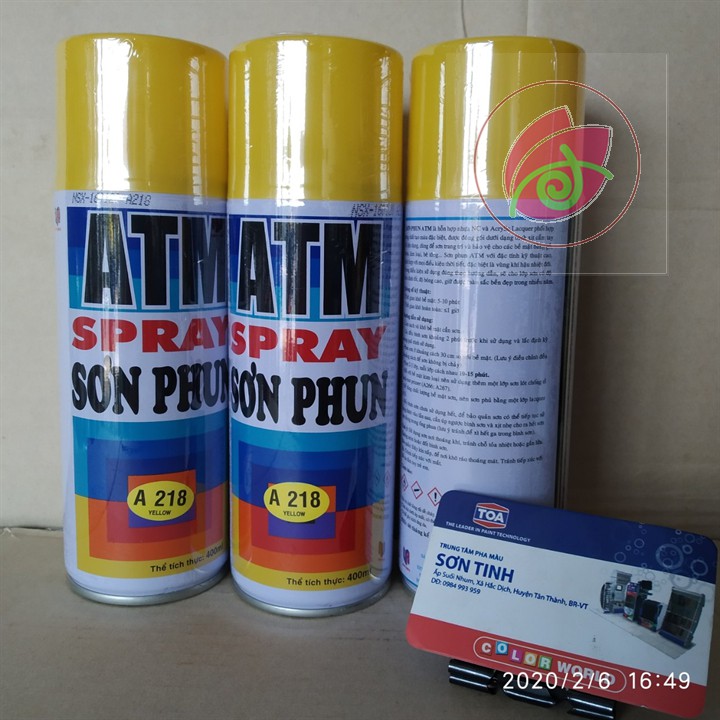 Sơn xịt màu vàng ATM A218SƠN XỊT ATM SPRAY Được Đặc chế từ hỗn hợp nhựa N/C và ACRYLIC, được đóng gói dưới dạng bình xịt cầm tay rất tiện dụng, dùng sơn để trang trí cho các bề mặt bằng gỗ và kim loại như: đồ gia dụng, bàn, ghế, đồ chơi trẻ em, xe đạp, xe máy,... Với đặc tính kỹ thuật cao, thích hợp với mọi điều kiện thời tiết, đặc biệt là vùng khí hậu nhiệt đới. Trong điều kiện sử dụng đúng theo hướng dẫn, sẽ cho lớp sơn có độ bám dính tốt, độ bóng cao, giữ được màu sắc bền đẹp trong nhiều năm. Đây là loại sơn mau khô, chất lượng tuyệt hảo với màu sắc tươi, bền và bóng đẹp đến không ngờ!