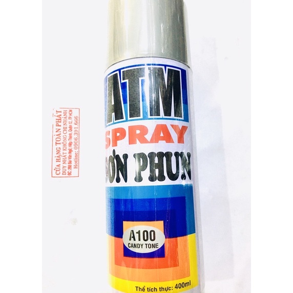 - sơn xịt ATM hàng chính hãng công ty- mã màu : A100(candy tone) phủ nhũ bạc (không có chức năng sơn màu)