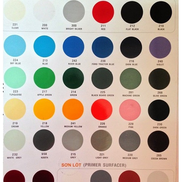 - Qúy khách có thể tham khảo bảng màu với mã sơn trên hình ảnh mô tả