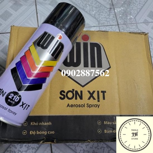 Sơn xịt Win dùng trên mọi chất liệu.Thùng 12 chai.