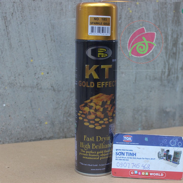 Giới thiệu Sơn xịt xi mạ vàng 18k 24k Bosny KT màu vàng lấp lánh sparkle gold 185 - Sơn xịt hiệu ứng mạ vàng