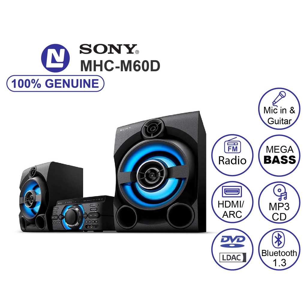 Thiết Bị Âm Thanh > Dàn âm thanh > Hệ thống âm thanh giải trí tại gia || [Mã 44ELSALE1 giảm 5% đơn 3TR] Sony MHC-M60D Dàn âm thanh Hifi - DVD - Bluetooth - Mic in / GuitarCòn hàng