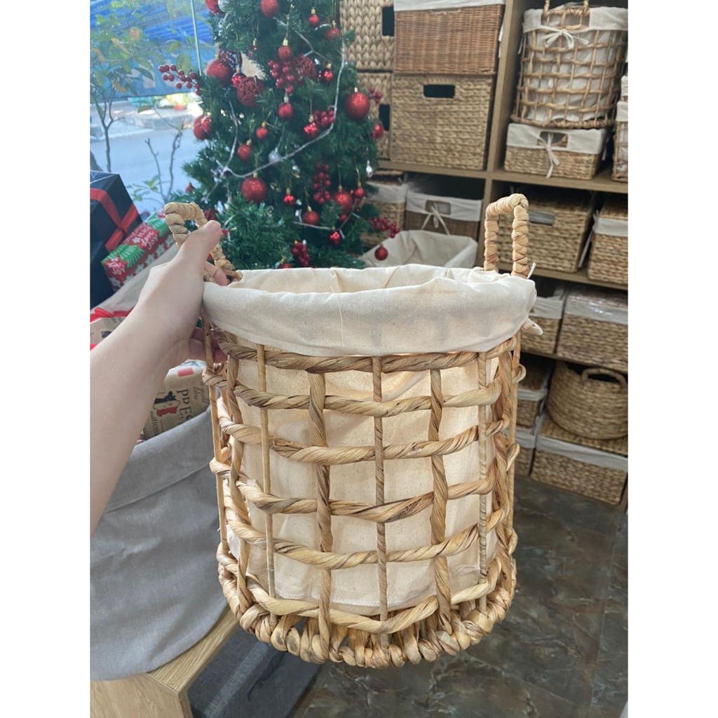 Nhà cửa & Đời sống > Trang trí nhà cửa > Bình trang trí || Sọt lục bình đan thưa có vải lót 28cmCòn hàng