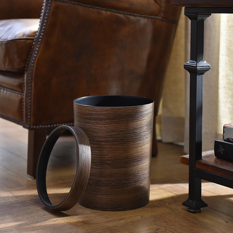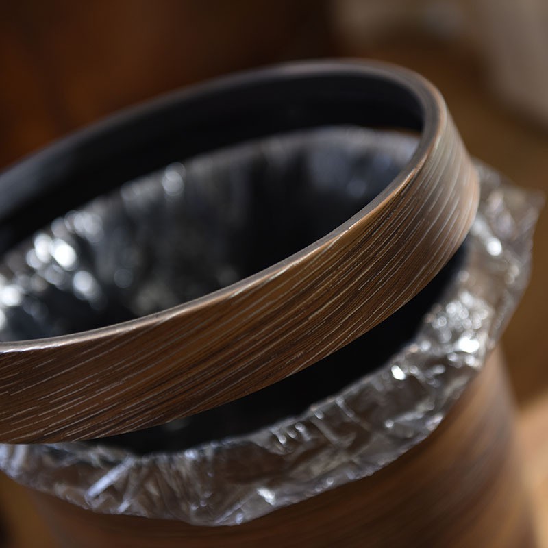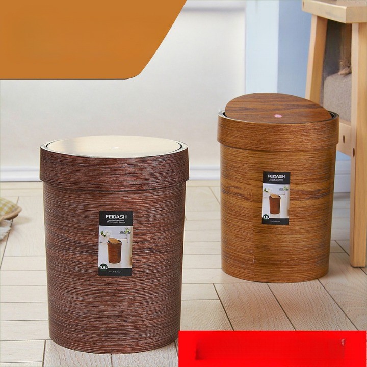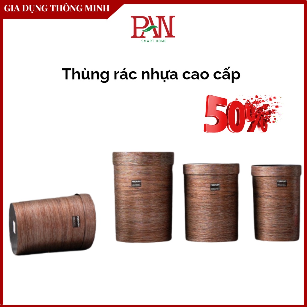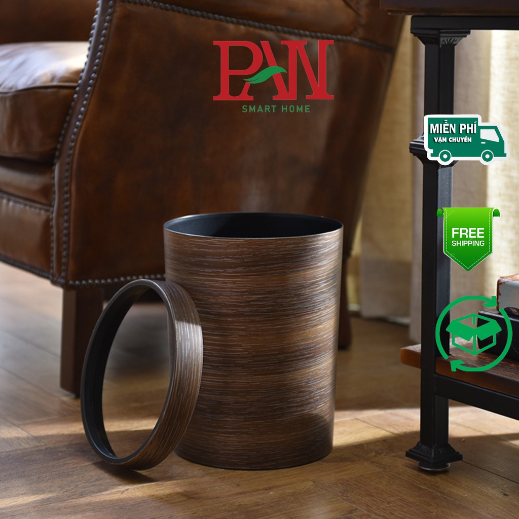 -Thùng rác vân gỗ tròn được làm từ 100% chất liệu nhựa PP bền đẹp, chắc chắn, an toàn, không có chất độc hại, thân thiện với môi trường.