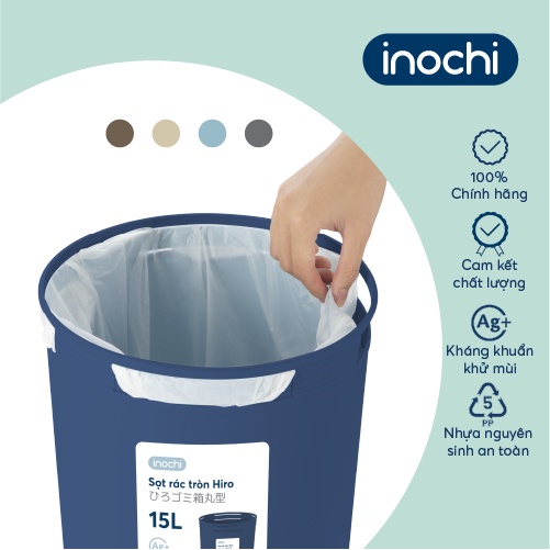 Nhà cửa & Đời sống > Dụng cụ chăm sóc nhà cửa > Thùng rác || Sọt rác Inochi - Hiro 15L màu Be sữa/Ghi sữa/Xanh nhạt/Nâu caféCòn hàng