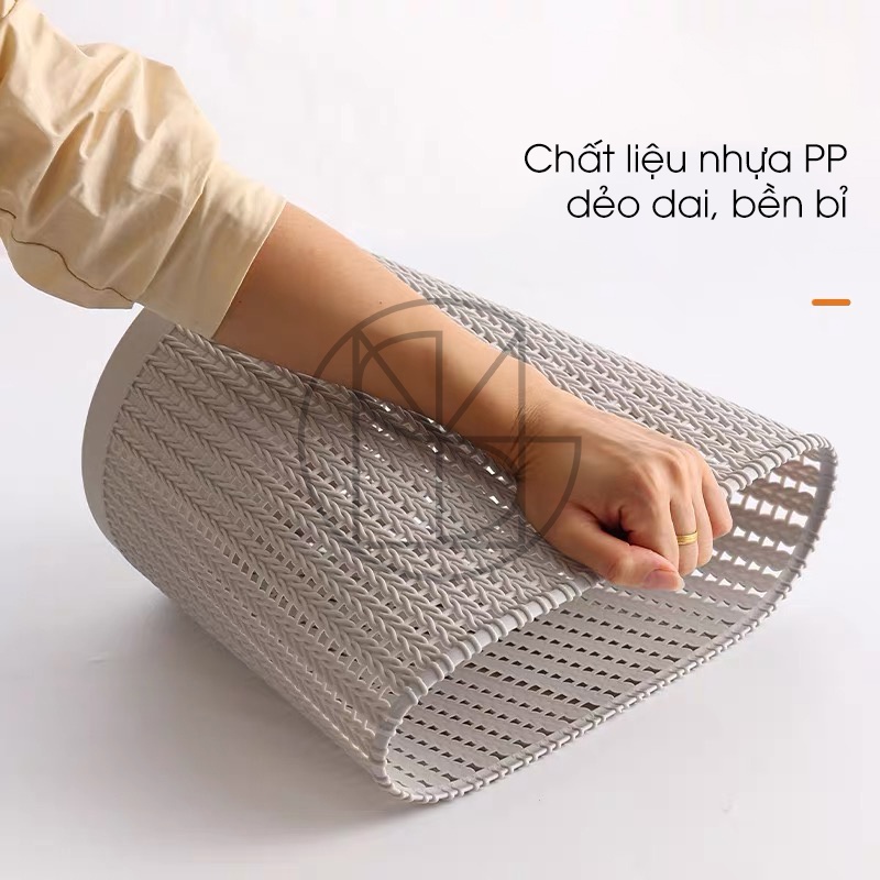 - Sọt rác nhựa tròn đan mây phong cách hàn quốc đựng đồ đa năng Việt Nhật ngoài đựng rác văn phòng bạn còn có thể để vật dụng nhỏ, linh hoạt tùy theo nhu cầu sử dụng.