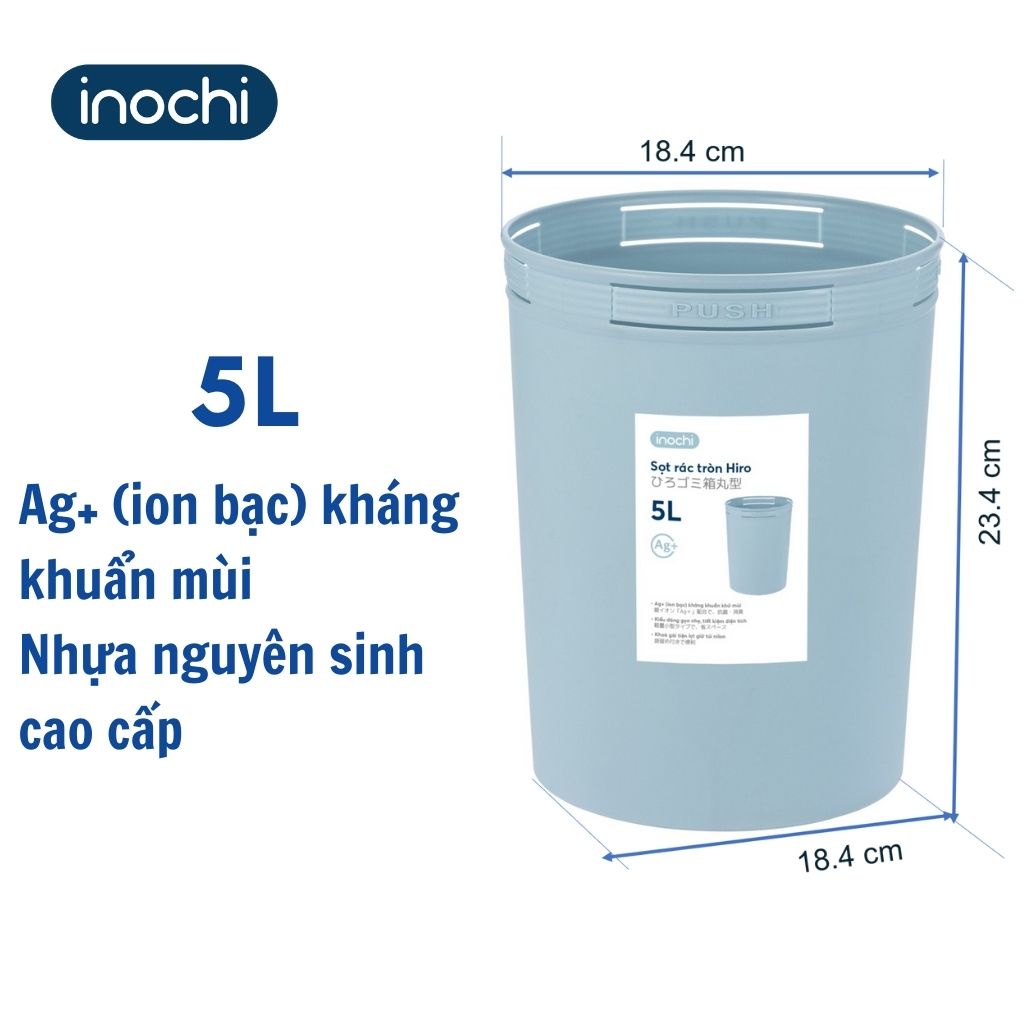 Giới thiệu Sọt Rác Nhựa Tròn INOCHI 5 Lít Thiết Kế Không Nắp Nhỏ Gọn, Đựng Rác Gia Đình, Văn Phòng, Khách Sạn Tiện Lợi
