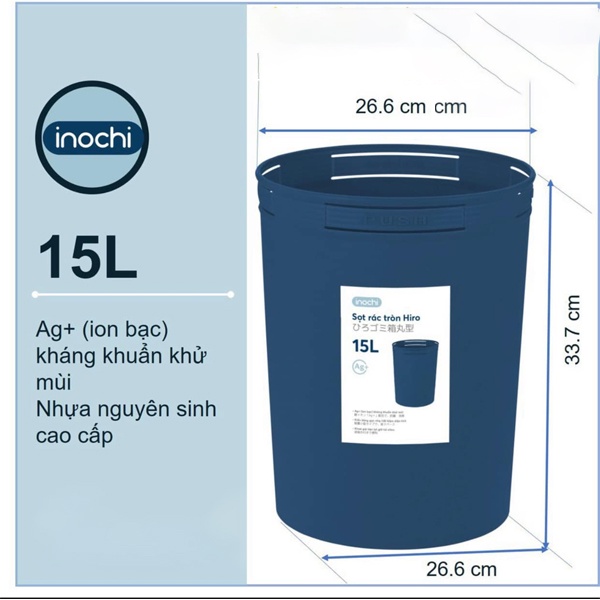 Nhà cửa & Đời sống > Dụng cụ chăm sóc nhà cửa > Thùng rác || Sọt Rác Tròn Hiro INOCHI Có Mắc Cài Túi Tiện Dụng 5L - 10L - 15LCòn hàng