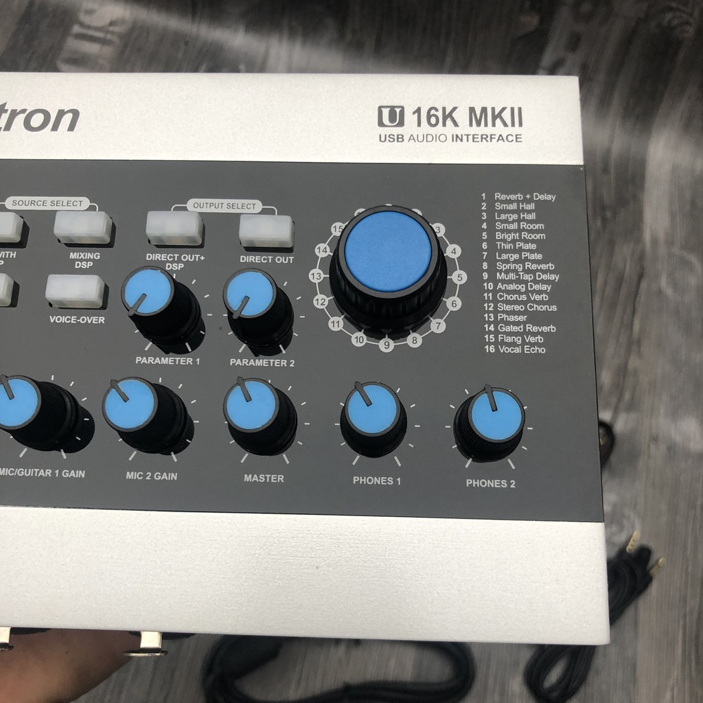 - Sound card Alctron U16K MK3 được tích hợp sẵn 16 hiệu ứng khác nhau, tuy nhiên sound card Alctron U16K MK3 cho phép bạn tuỳ chỉnh độ vang và delay cho hiệu ứng đã lựa chọn.