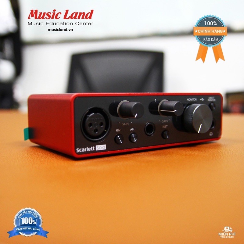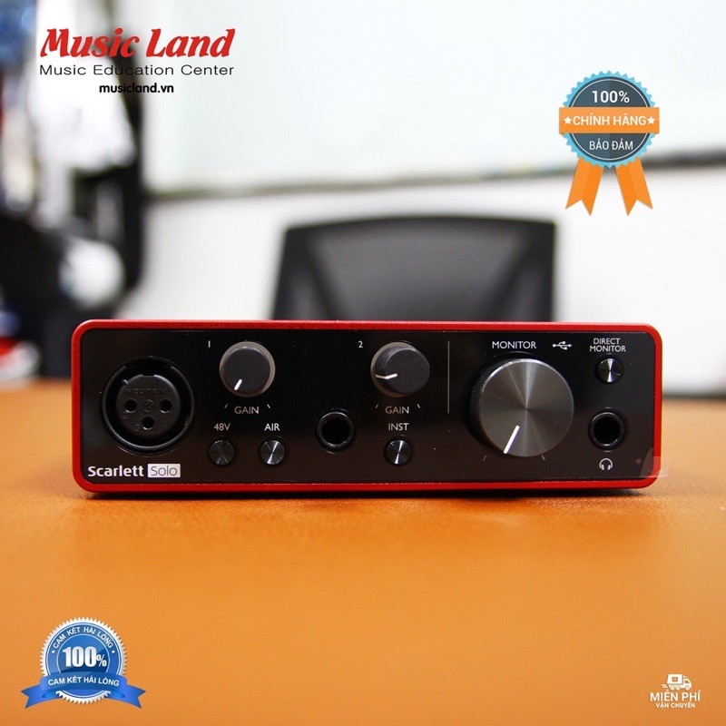 Giới thiệu sản phẩmĐây là phiên bản đời thứ 3 cổng giao tiếp USB-C từ Focusrite được nâng cấp chất lượng âm thanh và kiểu dáng mới, với nhiều tính năng đáp ứng chất lượng thu âm rõ ràng, trong sạch, làm nhạc cá nhân và trong studio, nghe nhạc lossless chất lượng cao của những tín đồ âm thanh. Soundcard thu đơn nhỏ gọn, tiện lợi, ngoại hình bắt mắt và kiểu dáng hiện đại như Scarlett Solo cũng rất thuận tiện di chuyển, bạn có thể mang đến bất cứ đâu để thu âm, kiểm âm, giải trí,...