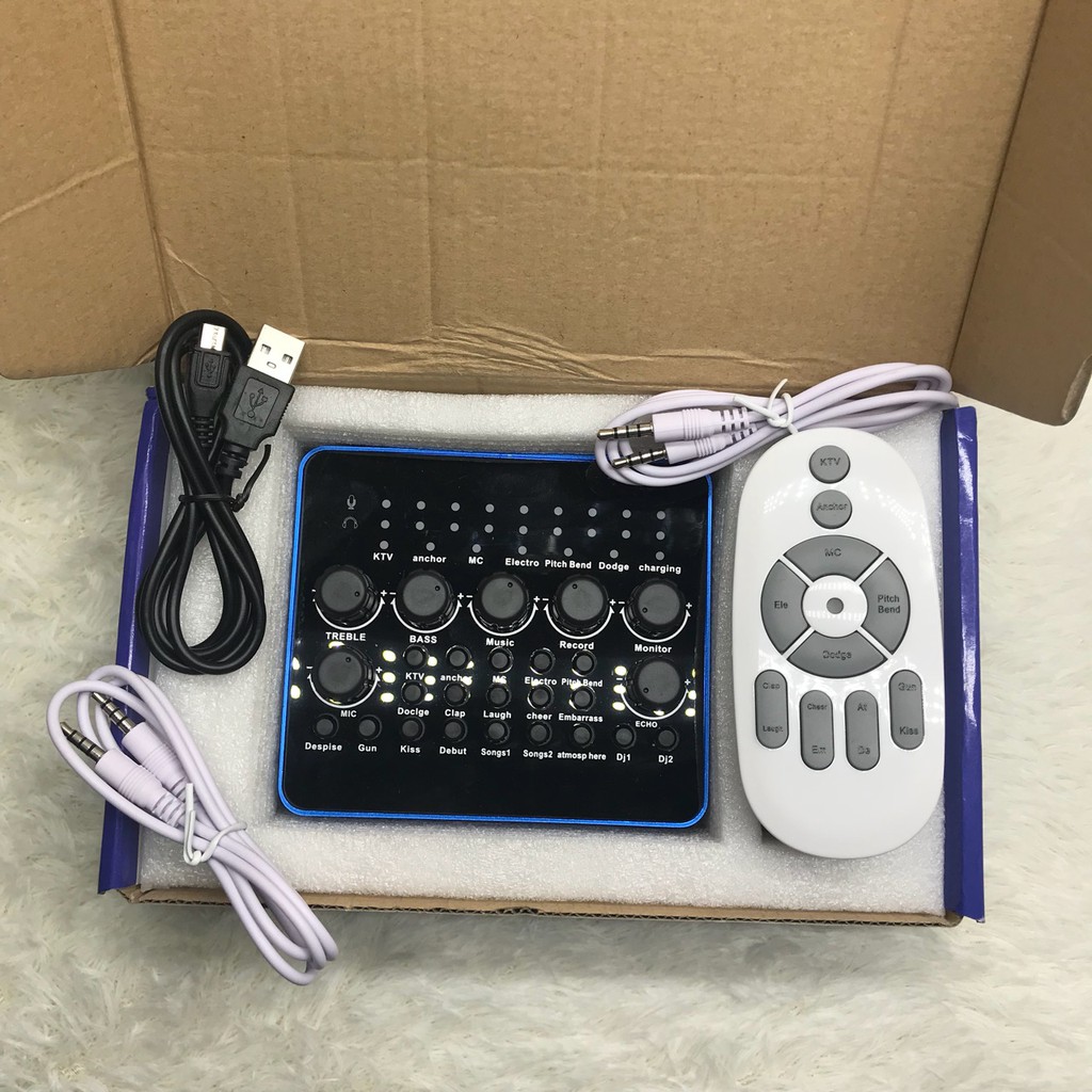 Máy tính & Laptop > Linh Kiện Máy Tính > Bo Mạch Âm Thanh || Sound Card âm thanh KTV kèm điều khiển và pin ( Đen phối xanh) -dc2884Còn hàng