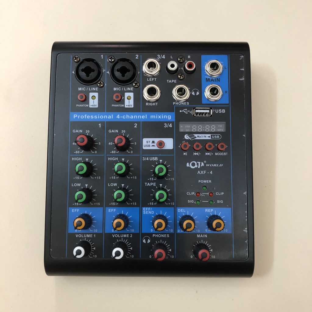 - Mixer F4-USB-BLUETOOTH hỗ trợ nguồn phantom 48V