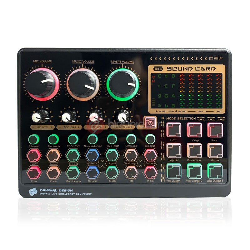 👉 Soundcard B13 là mẫu soundcard mới ra mắt gần đây với thiết kết cực kỳ bắt mắt, hiện ứng đèn sống động và bên cạnh đó soundcard cho ra chất âm sống động và chân thực và hổ trợ kết nối qua bluetooth