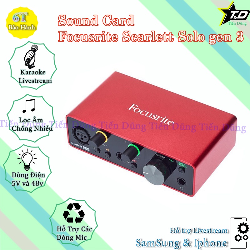 Sound Card Focusrite Scarlett Solo Gen 3 Hỗ Trợ Mic 48V và 5v Dòng Cao Cấp Solo USB Audio Interface Gen 3 Chính Hãng.🎯 LƯU Ý : Shop có phân loại 2 sản phẩm :