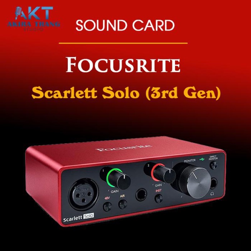 Focusrite Scarlett Solo là dòng Audio Interface (soundcard) USB bán chạy nhất tại thời điểm này. Được sản xuất bởi hãng Focusrite, một hãng nỗi tiếng về Audio tại Anh. Được tối ưu của nhà sản xuất về các tính năng ở Soundcard Focusrite Solo. Với phiên bản 3nd Gen hiện tại, có nhiều điểm nỗi bật: cho âm thanh tốt nhất, tốc độ truyền tải nhanh nhất, trải nghiệm dễ sử dụng đơn giản cho người tiêu dùng. Chất lượng âm thanh của Focusrite Scarlett Solo (3rd Gen) sẽ hơn hẳn so với dòng sound card live tream như k10, icon upod pro, u16k mk3 ..... chắc chắn sẽ không làm anh chị thất vọng