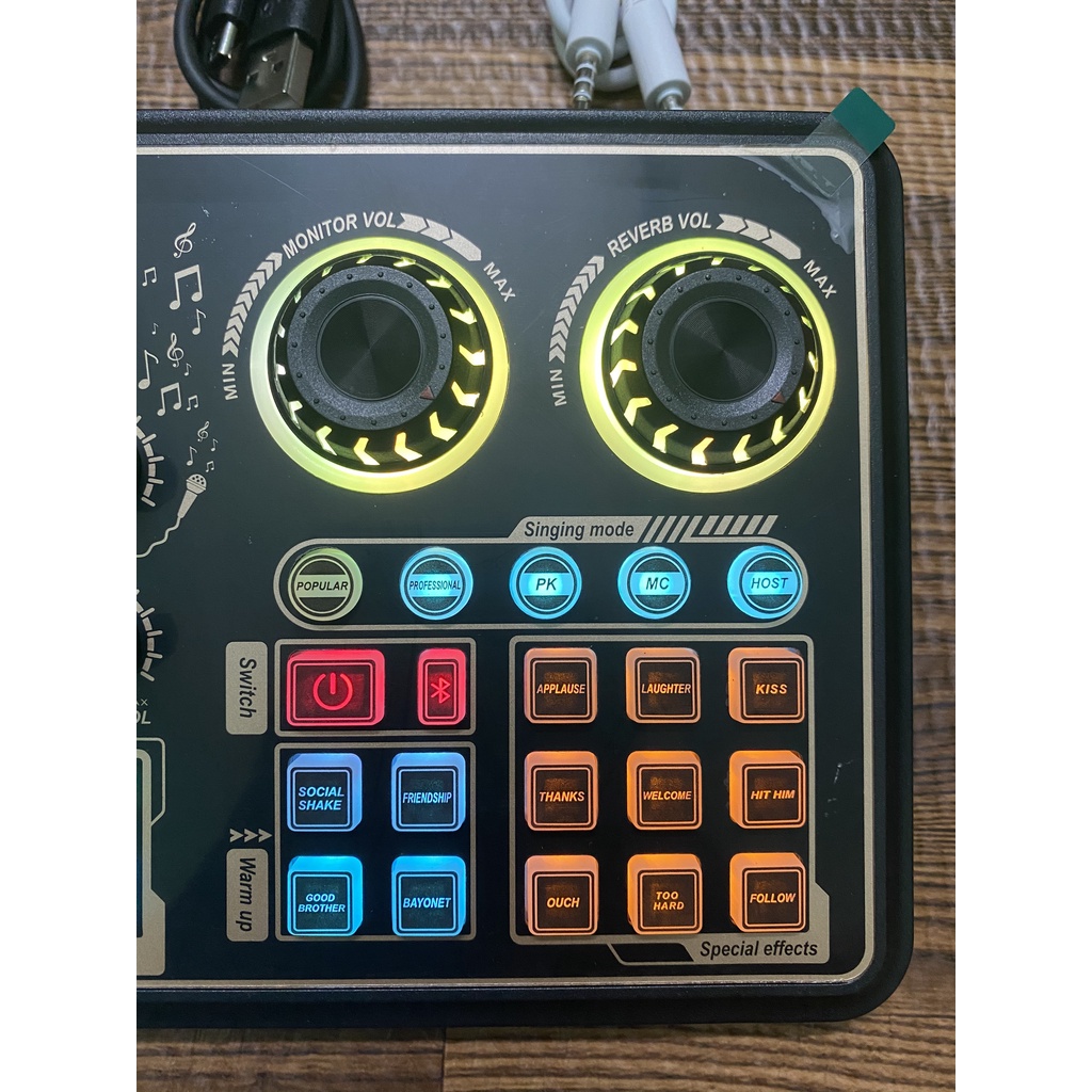 👉 Soundcard thu âm K600 PLUS Bluetooth gồm có 9 hiệu ứng vui nhộn để chèn vào các cuộc trò chuyện livestream hay ca hát ví dụ các đoạn thu tiếng game , vỗ tay , hò reo , nhạc cổ vũ .. kết hợp với đó là thêm những hiệu ứng thay đổi giọng hát sang tiếng trẻ em , méo giọng hát Soundcard thu âm K600 PLUS Bluetooth