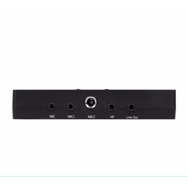 Soundcard XOX K108 tích hợp nhiều cổng jack khác nhau như jack 5V, 3.5mm, 6.3mm giúp kết hợp được với đa dạng micro mà không cần jack chuyển.