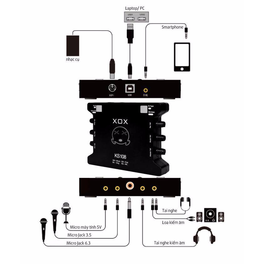 SOUND CARD XOX KS108(KS108 LÀ BẢN NÂNG CẤP CỦA K10 HỖ TRỢ HOÀN TOÀN BẰNG TIẾNG ANH THAY VÌ TIẾNG TRUNG Ở K10)