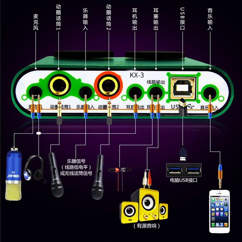 SOUND CARD KX3 DÙNG CHO CÁC MIC THU ÂM HOẶC MIC LIVESTREAM CÓ THỂ KARAOKE