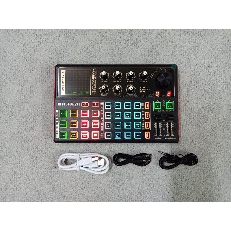 K300 mạnh mẽ trong phân khúc được thiết kế tinh tế theo hơi hướng hiện đại cùng với đó là chất liệu nhựa cao cấp ABS điều chỉnh các phím được phân bố phù hợp, cùng với đó K300 tích hợp hệ thống đèn led LGB với nhiều màu sắc bắt mắt tạo điểm đặc biệt sản phẩm.Tùy chỉnh âm sắc từng cổng micro, nhạc cụ riêng biệt, hát trực tiếp bằng micro trên tai nghe điện thoại phổ thông, chế độ Auto-Tune hát hay hơn với nhiều tùy chỉnh tông nhạc theo bài hát.Trọn bộ sản phẩm Sound Card K300 gồm: