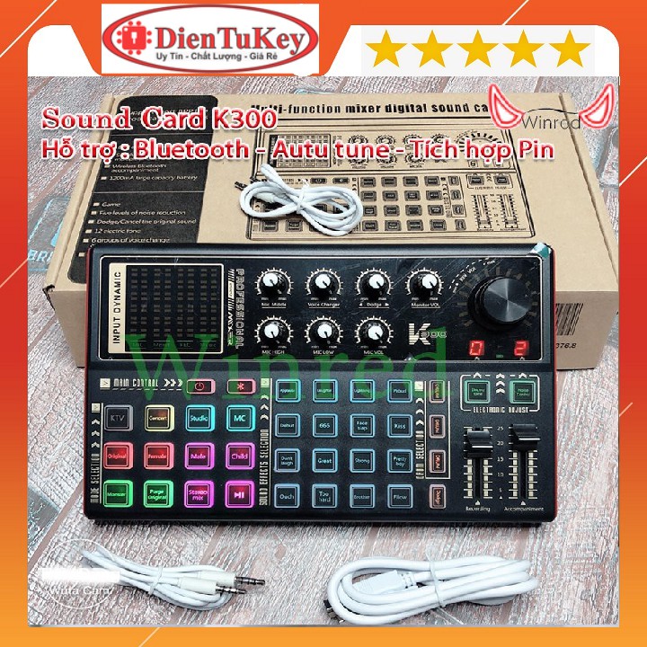 - Đặc biệt Sound card K300 có thêm chế độ kết nối Bluetooth với điện thoại để phát nhạc.Xuất Xứ: Trung Quốc.