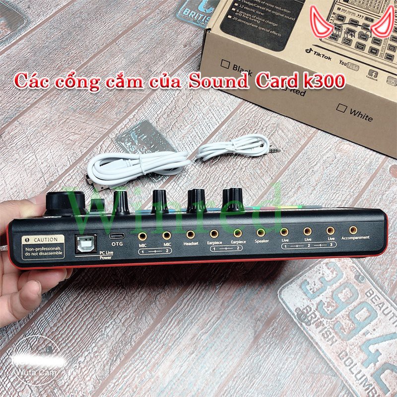 Bộ Sound Card Livestream K300 Thu âm, Karaoke Livestream hỗ trợ tốt các dòng mic 5 và 48V hơn sound card h9