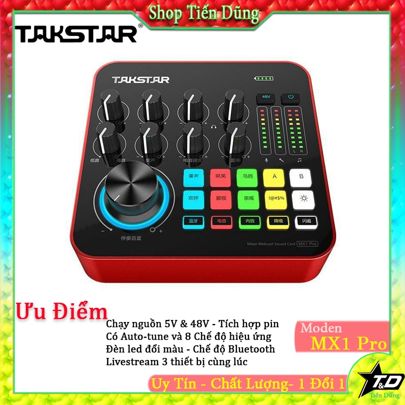 Thiết Bị Âm Thanh > Amply và đầu chỉnh âm || Sound card Takstar MX1 Pro Thu Âm, Livestream Chuyên Nghiệp Hỗ Trợ Bluetooth , 8 Hiệu Ứng, Đèn LED đổi màu, Tích Hợp PinCòn hàng