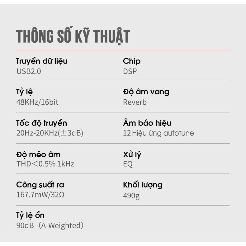 Tích hợp chip kỹ thuật số DSP, điều chỉnh độc lập REVERB, VOICE và RETUNE,..Âm thanh chuyên nghiệp, dễ dàng sử dụng