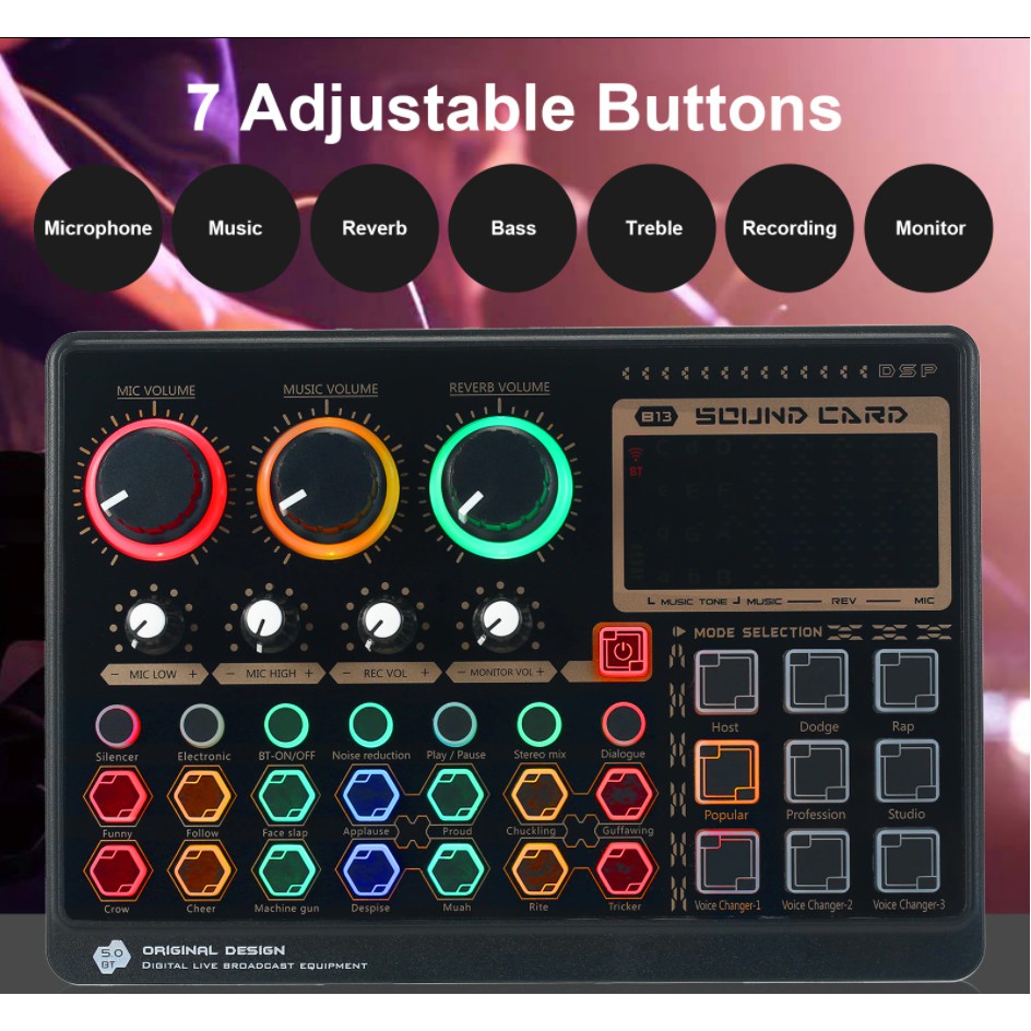 Bộ Sound Card Thu Âm B13 Và Mic BM 900 - Với 14 Hiệu Ứng Đặc Biệt - Kết Nối Bluetooth - Kèm Jack Kết Nối Livestream 2021