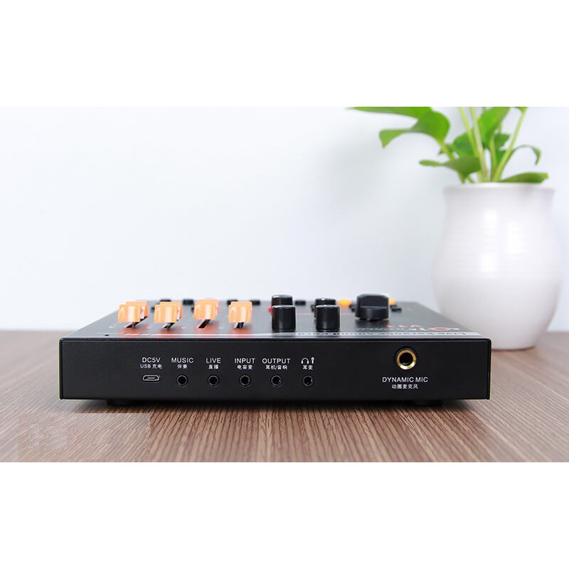 Sound card thu âm V11 được thiết kế hoàn toàn bằng kim loại chắc chắn, toát lên vẻ sang trọng cho một một thiết bị âm thanh. Đặc biệt các nút chỉnh âm lượng, vol, echo trên Sound card V11 khá giống các nút gạt trên các mixer, bản điều chỉnh audio studio chuyên nghiệp.