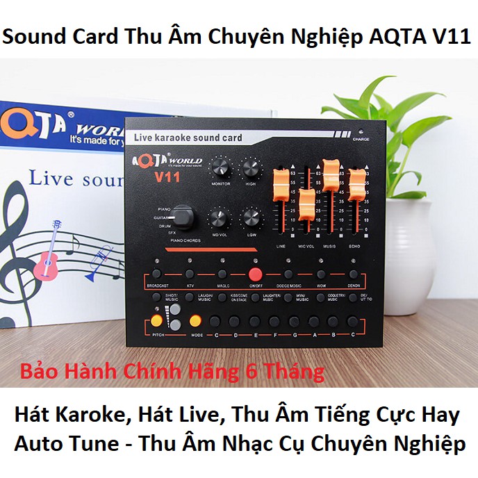 Sound Card Thu Âm Cao Cấp Chuyên Nghiệp - AQTA V11 – Thu Âm, Live Stream, Hát Karaoke Gia Đình Cực Hay Bảo Hành 6 Tháng
