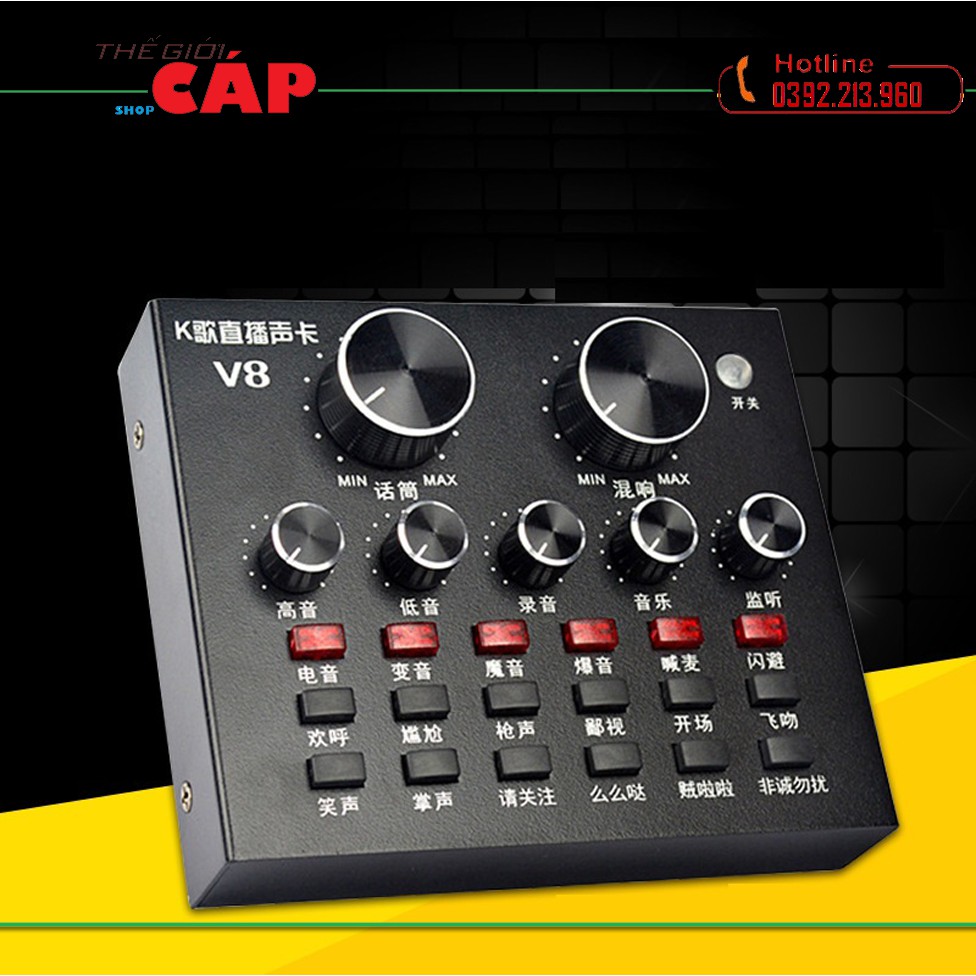 Sound card hiểu nôm na là “Card” Âm Thanh tức là thiết bị dùng để thu nhận, xử lý và phát tín hiệu âm thanh thông qua 1 thiết bị ngoại vi khác. Âm thanh trong máy tính là ở dạng digital (kỹ thuật số) muốn truyền tốt được ra ngoài cần có một thiết bị chuyển digital qua analog (tín hiệu băng tần) vậy nên Sound card thu âm V8 giúp máy bạn thực hiện điều đó.card thu âm V8 là sản phẩm card âm thanh tương thích với nhiều thiết bị như smartphone, laptop, pc, máy tính bảng. Với tính năng làm méo giọng hát, thành giọng trẻ em, người già, Khả năng chèn các hiệu ứng âm thanh vào các đoạn thu như tiếng vỗ tay, tiếng hò reo, nhạc cổ vũ, tiếng chim kêu... với 12 hiệu ứng âm thanh, sẽ đem lại cho bạn trải nghiệm thu âm vô cùng thú vị.