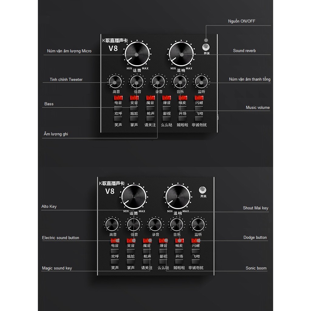 [Mã Elhace Giảm 4% Đơn 300K] Sound Card Thu Âm Hát Karaoke V8 Auto Tune