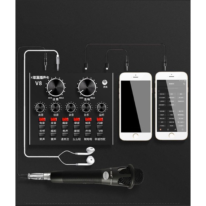 [Mã Elhace Giảm 4% Đơn 300K] Sound Card Thu Âm Hát Karaoke V8 Auto Tune