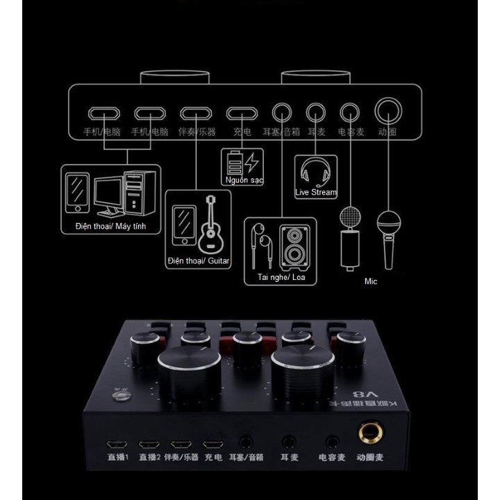 SOUND CARD THU ÂM V8 LÀ THIẾT BỊ CÔNG NGHỆ DÀNH CHO MICRO THU ÂM CAO CẤP HỖ TRỢ ĐIỀU CHỈNH GIỌNG HÁT TỐI ƯU, CÓ THỂ CHUYỂN ĐỔI GIỌNG VỚI NHIỀU CHẾ ĐỘ KHÁC NHAU MANG ĐẾN CHO BẠN CHẤT ÂM THANH TUYỆT VỜI NHẤT.