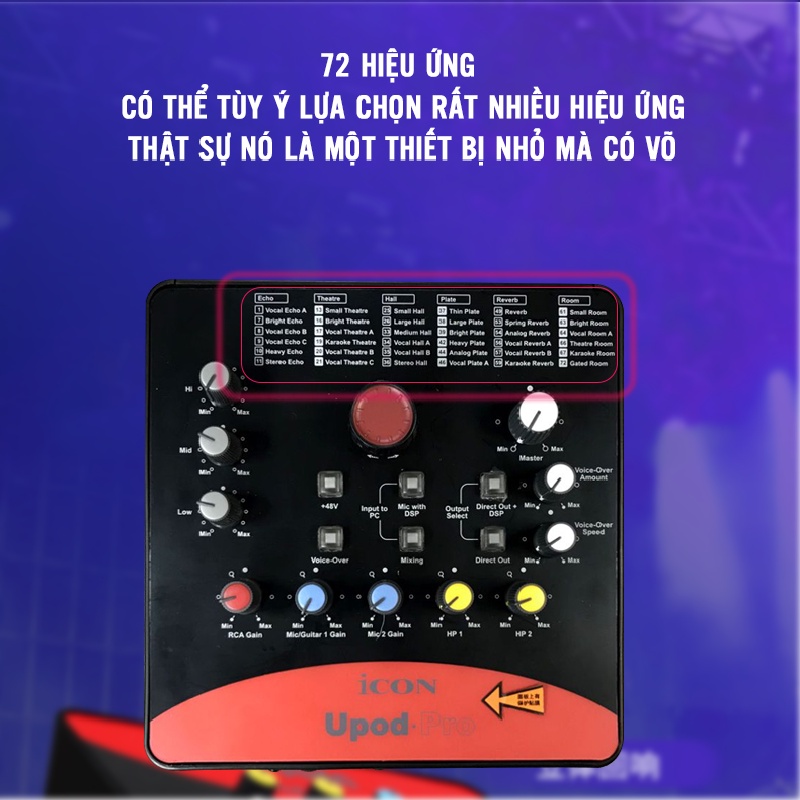 ✅ 1. GIỚI THIỆU SẢN PHẨM SOUND CARD ICON UPOD PRO👉Sound card Icon Upod Pro là sản phẩm nâng cấp của nhiều loại sound card kết hợp lại với 72 hiệu ứng âm thanh đầy hấp dẫn giúp các bạn có thể hát karaoke với mic thu âm hoặc micro karaoke, cũng như các bạn có thể live stream trên facebook – live stream trên bigo live hoặc các mạng live stream khác vô cùng hiệu quả và hay. Là lựa chọn thông minh sử dụng trong các phong thu chuyên nghiệp