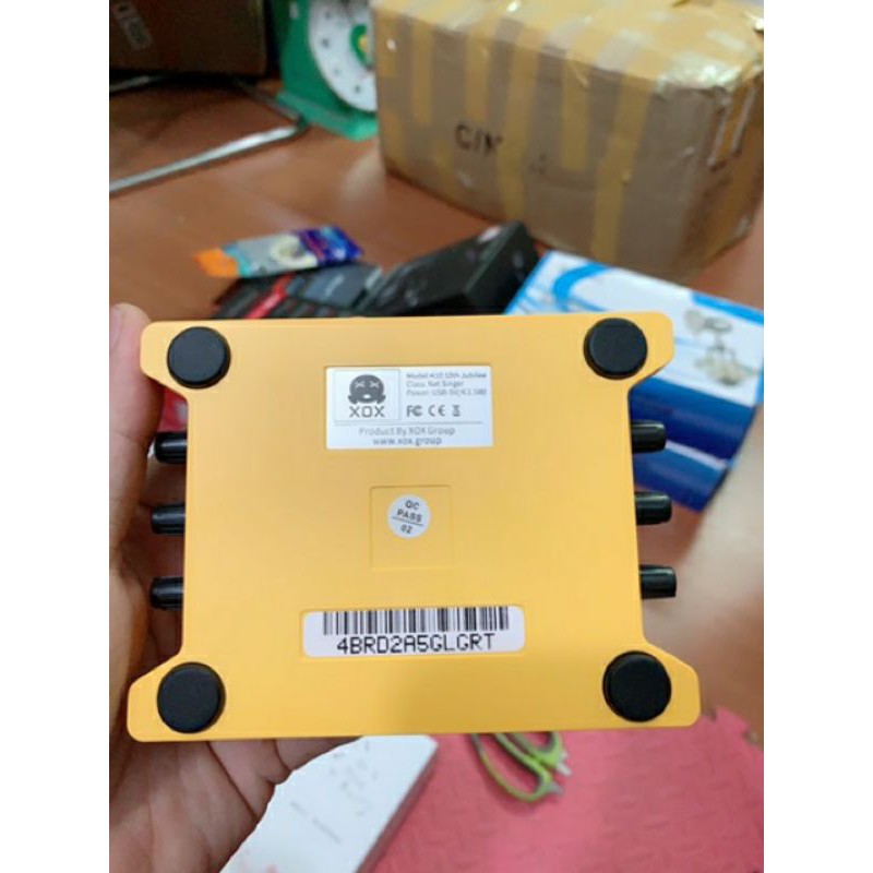 Soundcard Livestream XOX K10 10th phiên bản Tiếng Anh sự nâng cấp hoàn hảo đánh dấu 10 năm ra đời và thanh công của Soundcard livestream XOX K10. Trước đó hãng đã tung ra thị trường dòng sản phẩm là Sound Card XOX KS108 đã rất thành công và được sự đón nhận của người dùng. Để kỷ niệm 10 thanh lập ra mẫu XOX K10 hãng quyết định nâng cấp, cải tiến XOX K10 10th bản Quốc Tế đánh dấu bước gặt thành công và mở ra thị trường tiêu dùng trong nước và quốc tế một sản phẩm thu âm, livestream chất lượng.Tích hợp dây livestream theo sản phẩm.