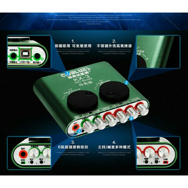 Sound card thu âm KX-3 là dòng sound card thu âm giá rẻ khá phổ biến trên thị trường hiện. Với ưu điểm nhỏ gọn, dễ sử dụng, âm thanh hay với rất nhiều hiệu ứng và chế độ thu âm, hát live, đây là sản phẩm giá rẻ nên mua sử dụng nhất để hát live và thu âm tại nhàBạn đang có nhu cầu tìm mua một chiếc sound card thu âm giá rẻ chất lượng tốt thì không nên bỏ qua Sound card KX-3, với khả năng kết nối với hầu hết các micro thu âm trên thị trường, cùng khả năng xử lý âm thanh rất hay với nhiều hiệu ứng phù hợp với thu âm và hát live, KX-3 mang đến cho bạn hệ thống âm thanh hoàn hảo. Nằm ở phân khúc giá rẻ với mức đầu tư chỉ với 650.000đ, KX-3 đang là dòng sound card được rất nhiều khách hàng quan tâm và sử dụng tại thị trường Việt Nam và Đông Nam Á