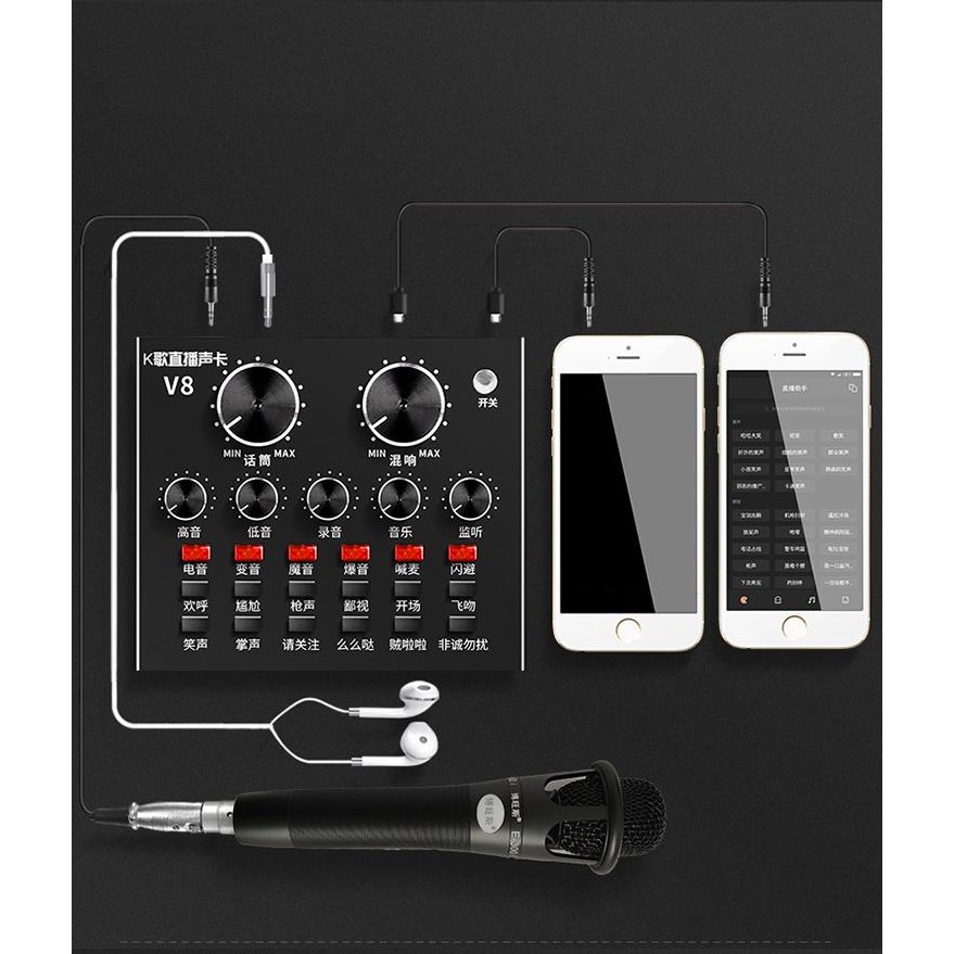 [Mã ELHACE giảm 4% đơn 300K] Sound Card Thu Âm Live Stream Hát Karaoke V8 Auto Tune