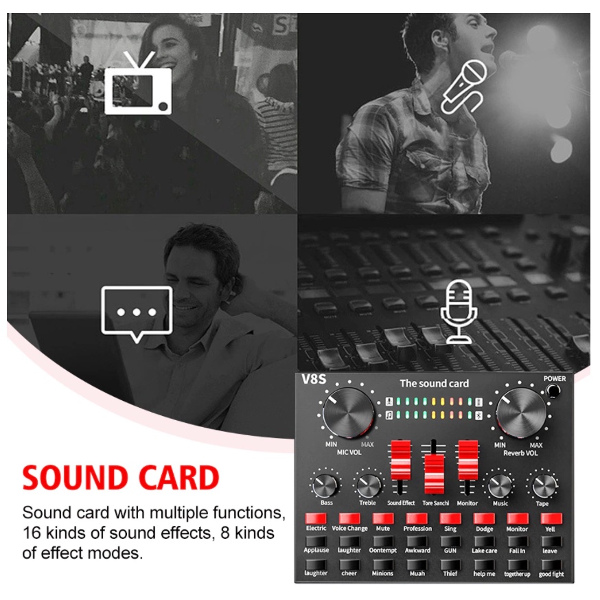 Sound Card Thu Âm Livestream V8S+ - Phiên Bản Nâng Cấp Cực Hay Của V8 - 16 Hiệu Ứng - Có Auto Tune - Bluetooth