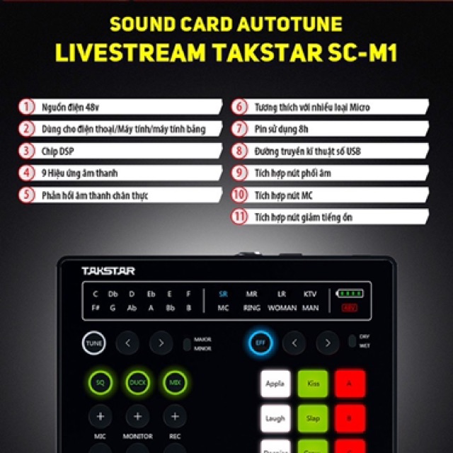 Giới thiệu Sound Card thu âm livestream cao cấp Takstar SC-M1 chính hãnh bảo hành 12 tháng