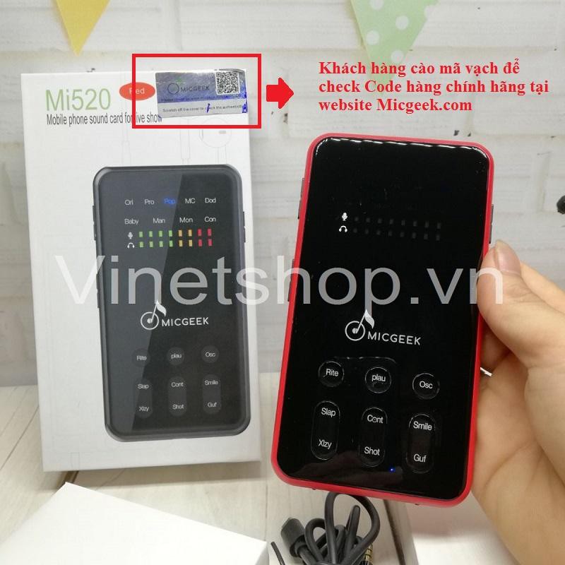 Sound card thu âm MICGEEK Mi52 - Card âm thanh livestream Karaoke di động cho điện thoại thông minhHiện nay trên thị trường rất nhiều dòng sound card livestream nhưng sản phẩm chính hãng chất lượng ok thì Vinet xin giới thiệu đến các bạn dòng sound card chính hãng của Micgeek và đó là Micgeek Mi520