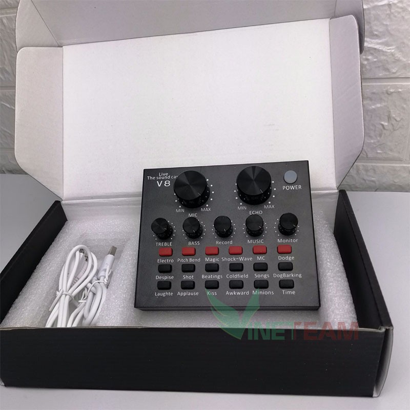 Máy tính & Laptop > Linh Kiện Máy Tính > Bo Mạch Âm Thanh || Sound card thu âm V8 có autotune và pin sạcCòn hàng