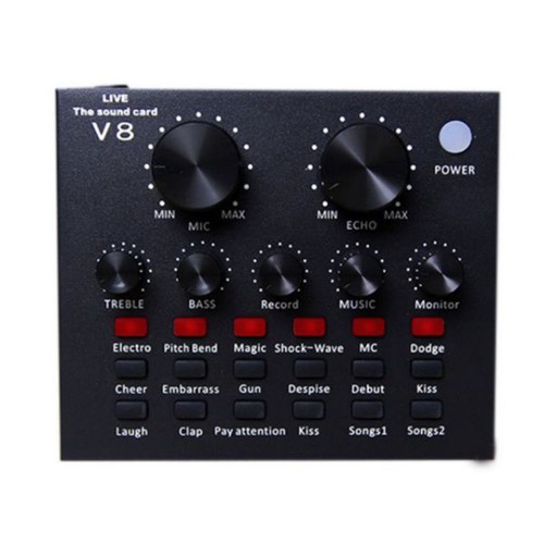 Sound card thu âm V8 thế hệ mới blutooth có auto Tone chất lượng caoSound card hiểu nôm na là “Card” Âm Thanh tức là thiết bị dùng để thu nhận, xử lý và phát tín hiệu âm thanh thông qua 1 thiết bị ngoại vi khác. Âm thanh trong máy tính là ở dạng digital (kỹ thuật số) muốn truyền tốt được ra ngoài cần có một thiết bị chuyển digital qua analog (tín hiệu băng tần) vậy nên Sound card thu âm V8 giúp máy bạn thực hiện điều đó.